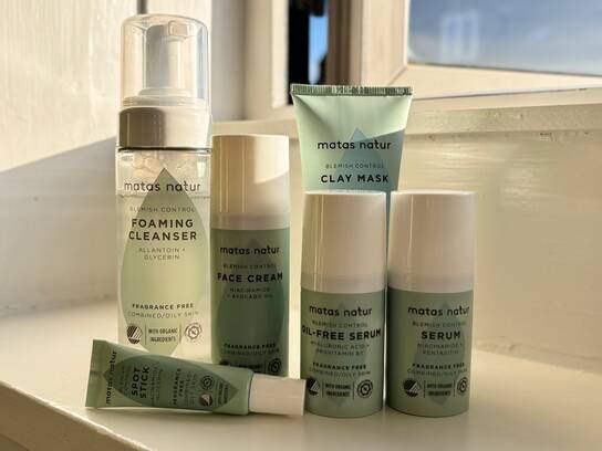 Matas Natur har udviklet en serie målrettet kombineret og fedtet hud med tendens til urenheder. Serien er helt uden parfume og bærer både Svanemærket og Asthma Allergy Nordic, så du kan føle dig tryg ved, hvad du smører på huden. Og det bedste? Produkterne er fyldt med udvalgte ingredienser, som giver huden balance og ro. Serien kan bruges som en simpel 3-trins rutine – rens, serum og creme – med en lermaske og en spot stick som ekstra hjælp, når huden har brug for det lille ekstra.