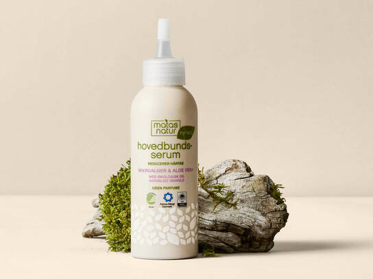 Matas Natur Hovedbundsserum er desuden vegansk, Svanemærket og deklareret med Astma-Allergi Danmarks Den Blå Krans.