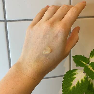 Jeg kommer to pump på fingerspidserne og påfører det i ansigtet og på halsen. Herefter presser jeg det let ind i huden for at sørge for, at alle de gode ingredienser kan trænge så godt ind som muligt. Mit førstehåndsintryk af produktet er, at det føles utrolig lækkert og giver en god glød til mit ansigt. Efter at have brugt det i en måneds tid, kan jeg se, at min hud er mere jævn, glat og fugtet end før.