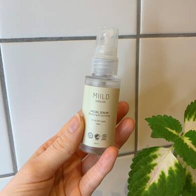 Miilds Facial Serum er lidt af en fugtbooster, da det er lavet på to typer hyaluronsyre. Det udglatter fine linjer og opstrammer huden, samtidig med at det giver en instantly lækker glød.