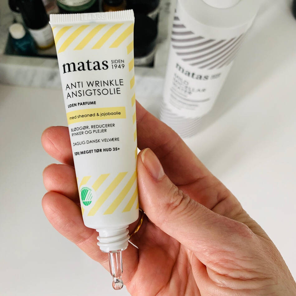 Dog skal jeg om natten supplere med lidt ekstra, da min hud er meget tør. Her har jeg prøvet den nye olie fra den nye Matas Anti Wrinkle serie -den olie er jeg kæmpe fan af og den skal I snart høre mere om!