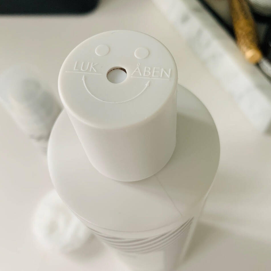 Til sidst skal jeg bare lige vise en sød lille detalje på Micellar Water. For ikke nok med, at selve åbningen er foroven i låget og åbnes ved at dreje på låget. Men bemærk lige den lille smiley – den fik i hvert fald også mit smil frem.