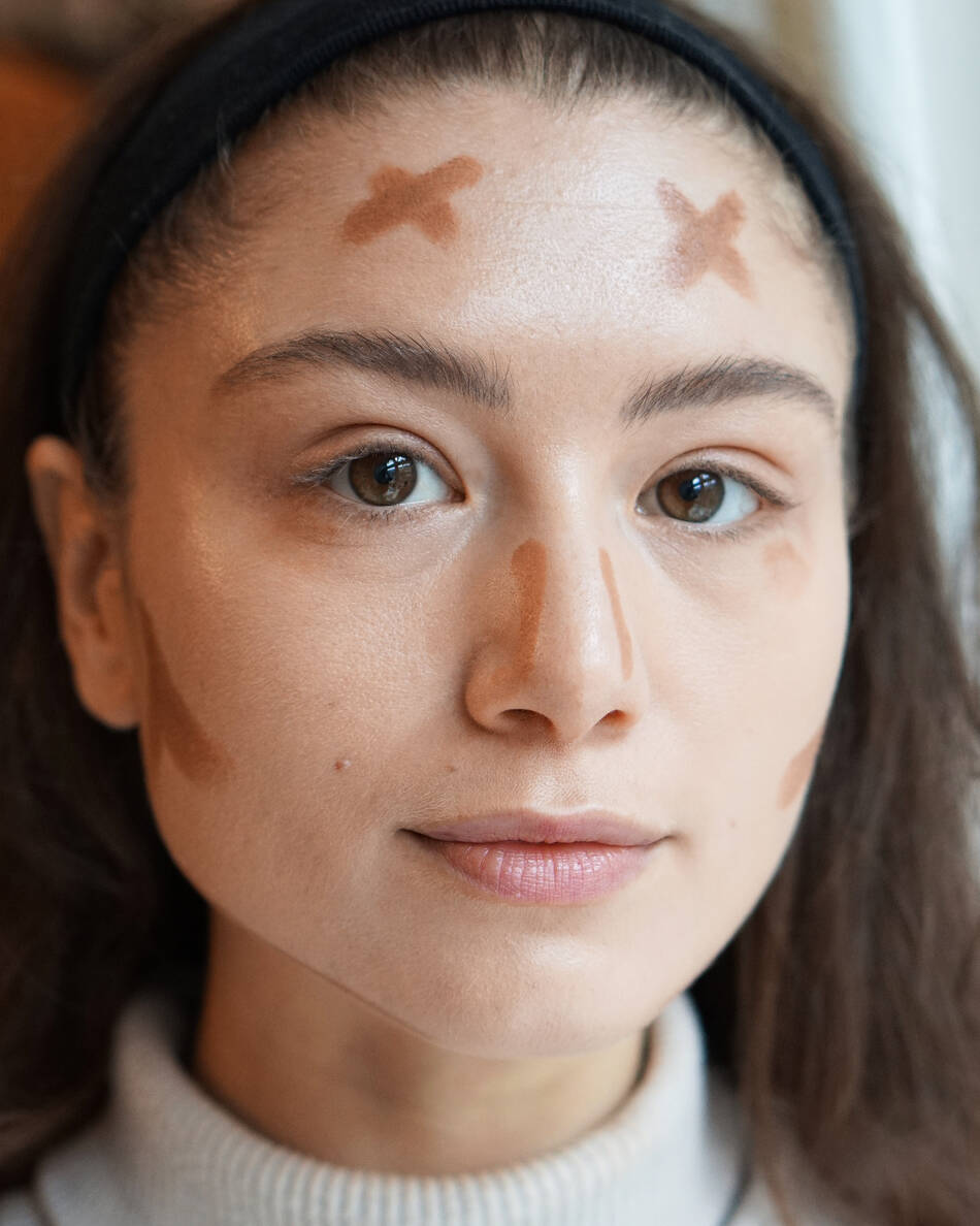 Når din base er lagt, er lookets første step contour. Der findes mange forskellige teknikker til at lægge din contour, men som hovedregel handler det om at definere dit ansigt. Det gør man ved at fremhæve de dele af ansigtet, solen naturligt rammer, og nedtone de dele, hvor skygge normalt rammer. Med contour kan man snyde sin pande mindre, kindbenene højere, og kæbelinjen skarpere.
