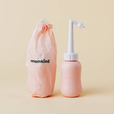 ’Op mod 90% af førstegangsfødende brister under fødslen. Det kan gøre ondt at tisse og tørre sig, men området skal stadig holdes rent. Skylleflasken er designet med et knæk, så man kan holde den ned i toilettet og bruse på sit underliv. Et musthave, hvis du har født vaginalt eller har været tæt på det inden et kejsersnit.’