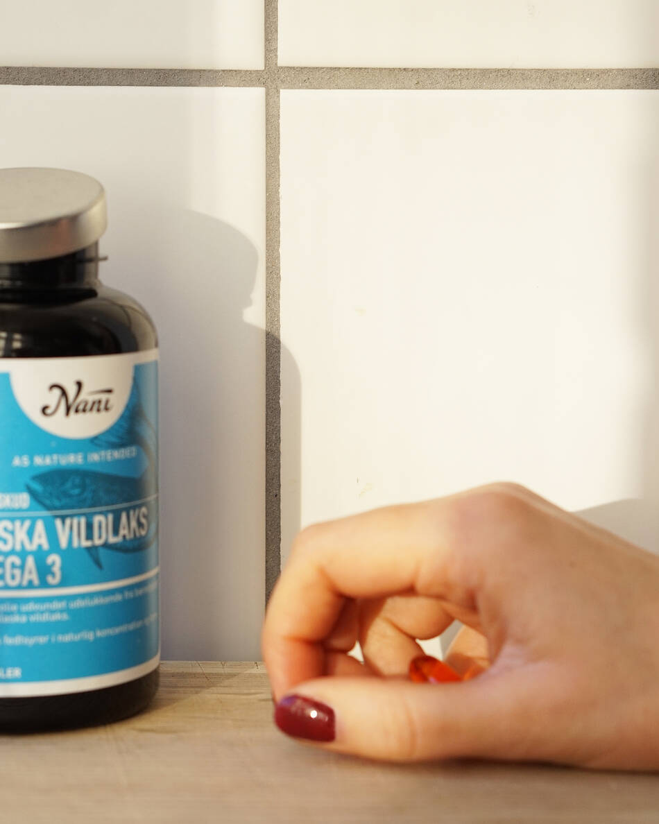 En varieret kost med udgangspunkt i de officielle kostråd er bærende for den gode vane, og så kan du eventuelt supplere din kost med et kosttilskud, der er rigt på omega-3 fedtsyrer. Nani Alaska Vildlaks Omega 3 er et kosttilskud med fiskeolie, der er udvundet udelukkende fra bæredygtigt fangede Alaska vildlaks, og laksens fedtsyrer forekommer i naturlig form i kosttilskuddet.
