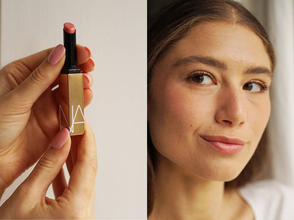 NARS Afterglow Sensual Shine Lipstick er blød og superlækker på læberne. Her har jeg brugt farven 777 Orgasm - men prøv dig frem og find din yndlingsnuance.