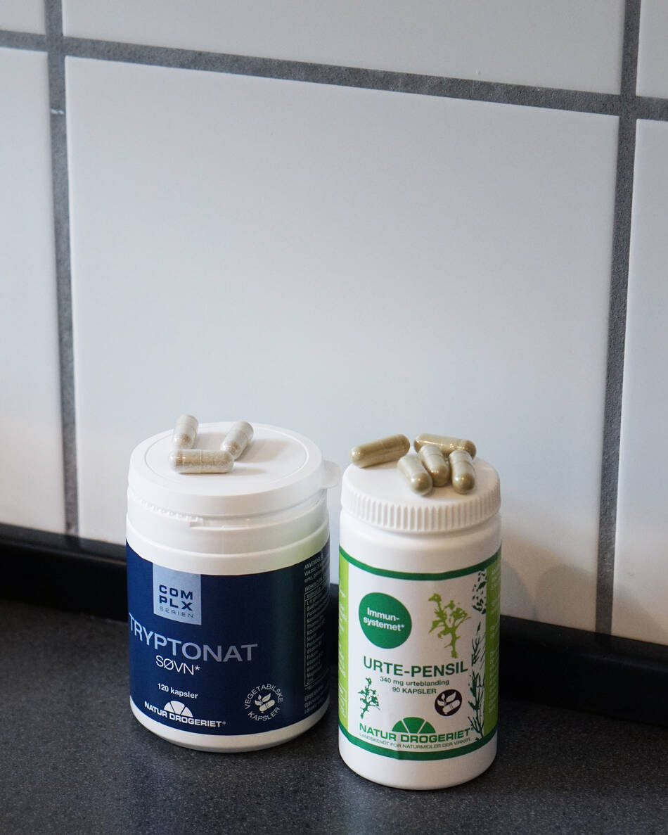 Urte-Pensil fra Natur Drogeriet indeholder echinacea, og TryptoNAT indeholder baldrian, som er en urt, vi stiller skarpt på lidt længere nede i artiklen.