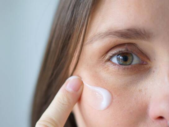 - Step 3: Øjencreme: Dup forsigtigt en lille mængde under øjnene for at reducere hævelser og fine linjer.