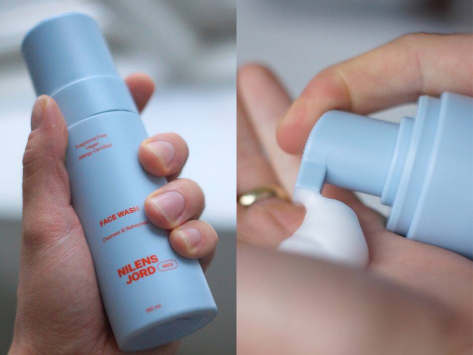 Denne milde renseskum fra Nilens Jord Men er det oplagte sted at starte — både morgen og aften. Den fjerner effektivt snavs, overskydende olie og urenheder, uden at huden udtørrer eller irriteres. Det skyldes blandt andet ingredienser som glycerin, der tilfører fugt, samt rhamnose og hvedekerneekstrakt, som beroliger og blødgør huden.