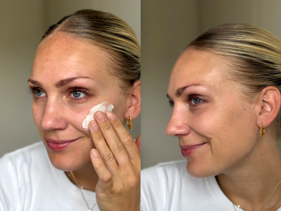 Når du trykker cremen ud, har den en lidt grålig farve, men så snart du fordeler den, forvandler den sig og blender naturligt ind i huden. Så er der altså naturlig, smuk glow!