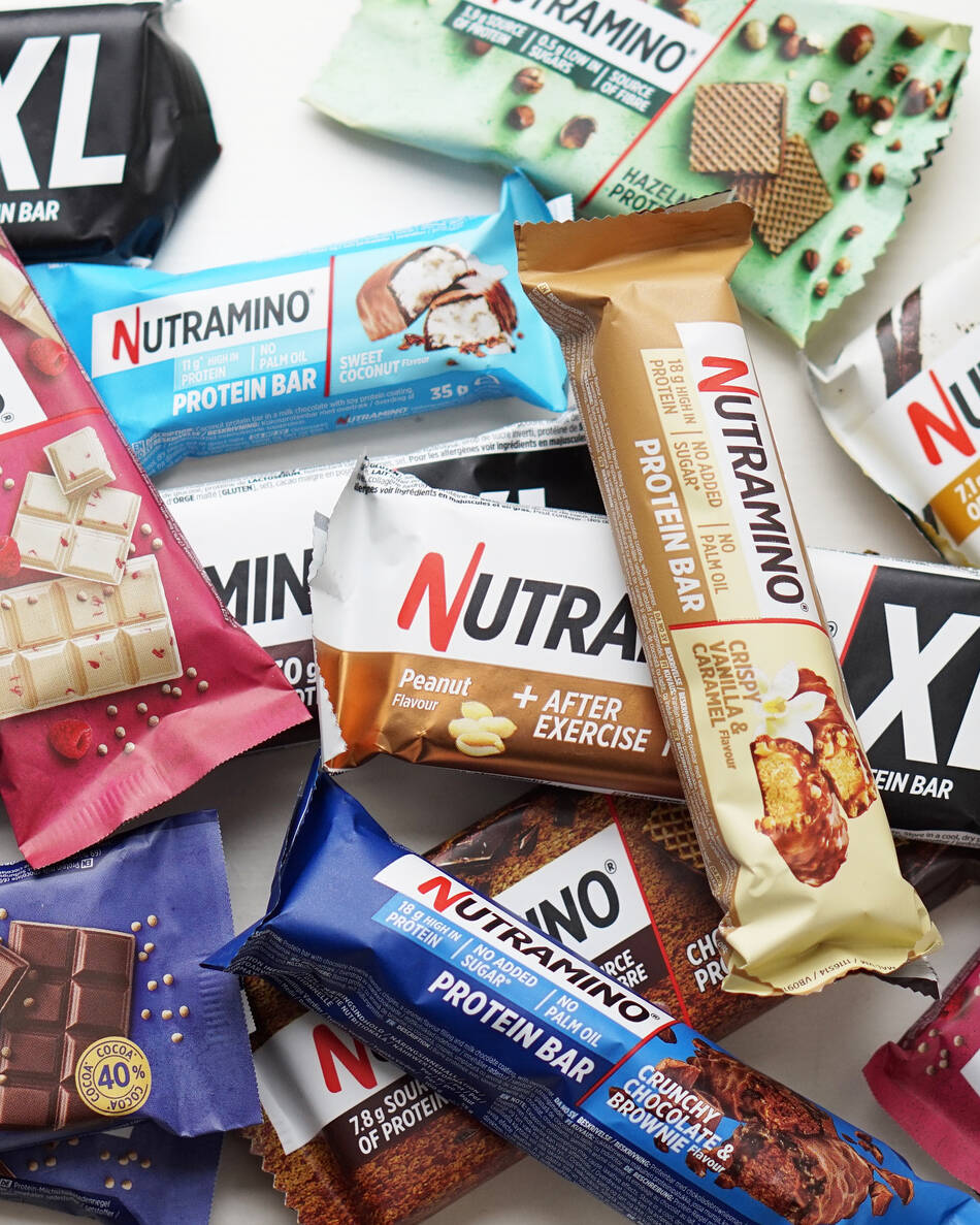 Proteinindholdet i Nutraminos barer i normalstørrelse indeholder alle lige præcis 18 g. protein og er dermed en ganske mættende snack, som er perfekt at spise op til eller efter en træning – eller lige når du ellers har lyst til lidt fyldt chokolade.