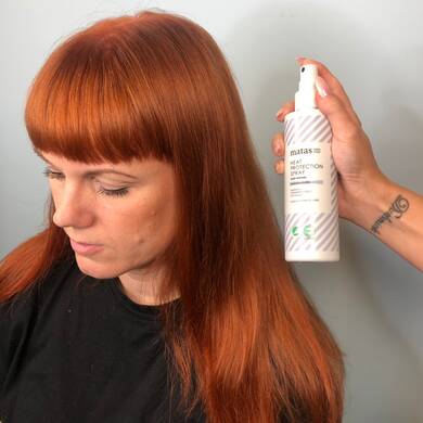 Inden du begynder at bruge et krøllejern, er det vigtigt, at du beskytter dit hår med en varmebeskyttende spray. Her kan du bruge Matas Heat Protection Spray uden parfume i hele håret for maksimal beskyttelse.