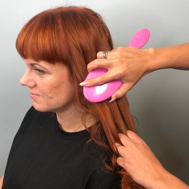 Når du har krøllet hele dit hår, strækker du krøllerne ud med en børste og dine fingre – men først når det er kølet af, for så holder krøllerne bedre.