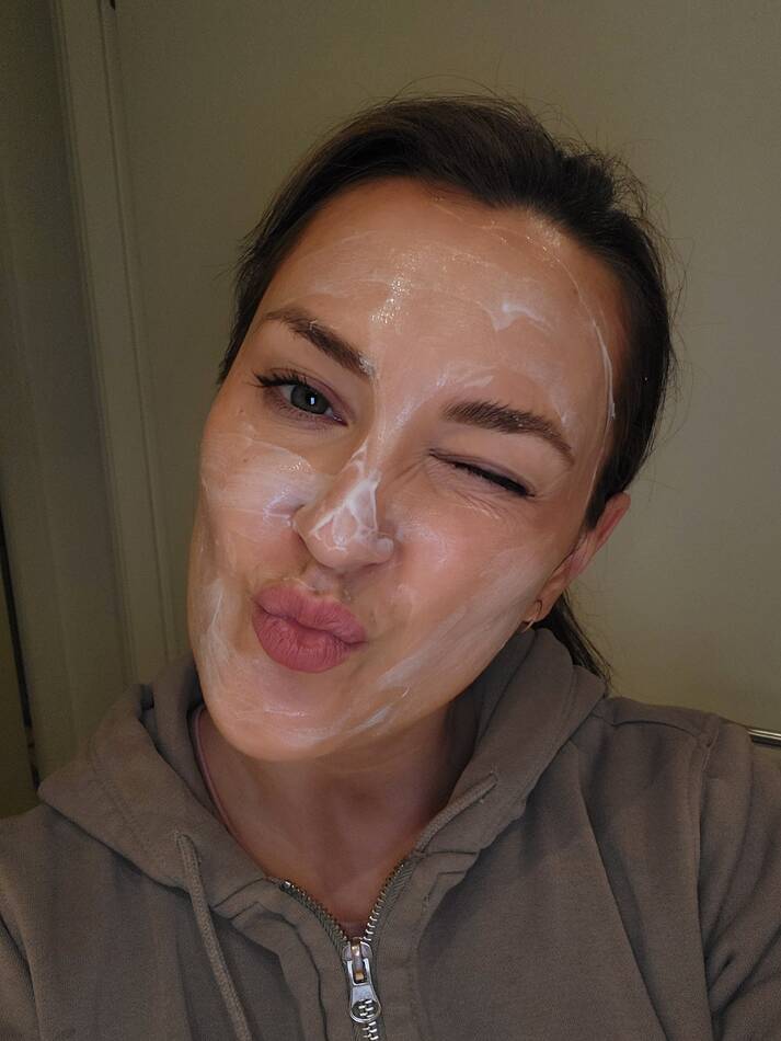 Jeg føler heller ikke rigtigt, at min hud efterlades tør – tværtimod føles den fugtet, men ren, som nok er takket være glycerinen. Jeg brugte den morgen og aften, og den skummende mælkeagtige konsistens spredte sig nemt ud på min hud.