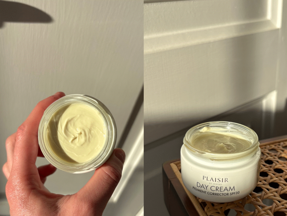Plaisir Pigment Corrector Day Cream er en fugtgivende dagcreme med SPF 30. Dagcremen indeholder en bredspektret solfaktor, hvilket betyder, at du ikke behøver bruge en separat ansigtssolcreme i din rutine. Udover de to stjerneingredienser, niacinamid og bakuchiol, indeholder den pentavitin®, som giver huden intens fugt, samt E-vitamin, som beskytter huden i løbet af dagen mod udefrakommende faktorer. PENTAVITIN® er et varemærke tilhørende DSM-Firmenich-gruppen.