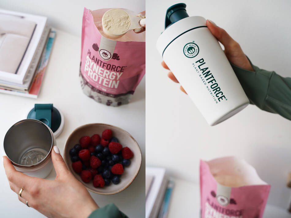 Plantforce Berry Protein smager også rigtig skønt som en almindelig proteinshake ovenpå træningen. Bland med mælk og voilà; en lækker forfriskning.