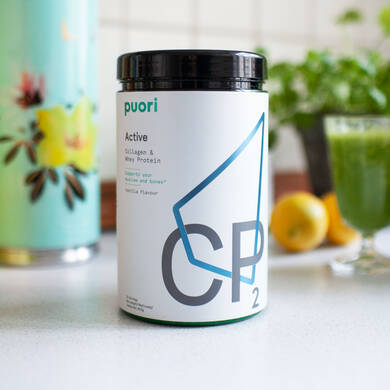CP2 Active Kollagen og Valleprotein er et innovativt kollagenpulver med vaniljesmag. Det indeholder hydrolyserede kollagenpeptider, som du også finder i Puoris CP1 og CP3 kollagenpulver. Det er et meget letoptageligt form for kollagen.
