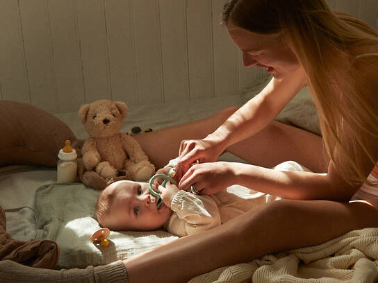 Du behøver ikke pakke alle favoritterne fra legetøjsskuffen, men hav gerne 1-2 stykker legetøj med, så der altid er noget at gribe til, hvis baby vågner og har brug for det.