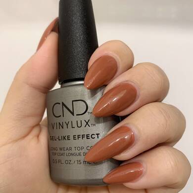 1. CND Vinylux Gel Effect Top CoatTopcoaten skulle tørre på 8-10 minutter med resten af CND Vinylux systemet. Det havde jeg også på fornemmelsen at den gjorde, selvom jeg brugte en anden lak. Den var i hvert fald tør på overfladen, men natten over og henover de næste 2-4 dage, kom der alligevel et par mærker i lakken. Hvilket betyder at der er forskel på om du anvender topcoaten med en CND Vinylux lak eller med en anden lak.