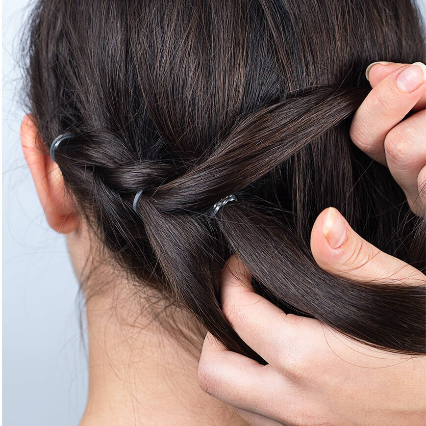 Brug evtentuelt spidsen af en smidskam til at inddele håret, hvis du synes det er svært med fingrene.