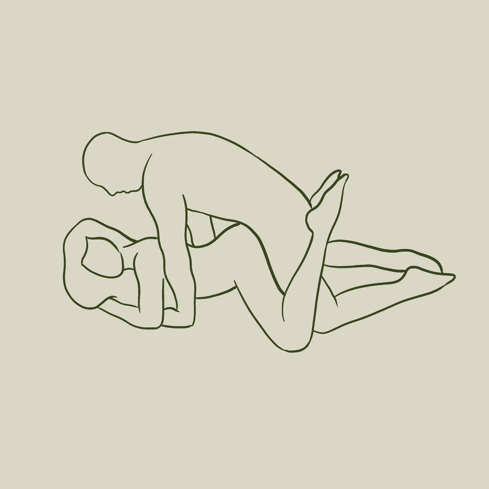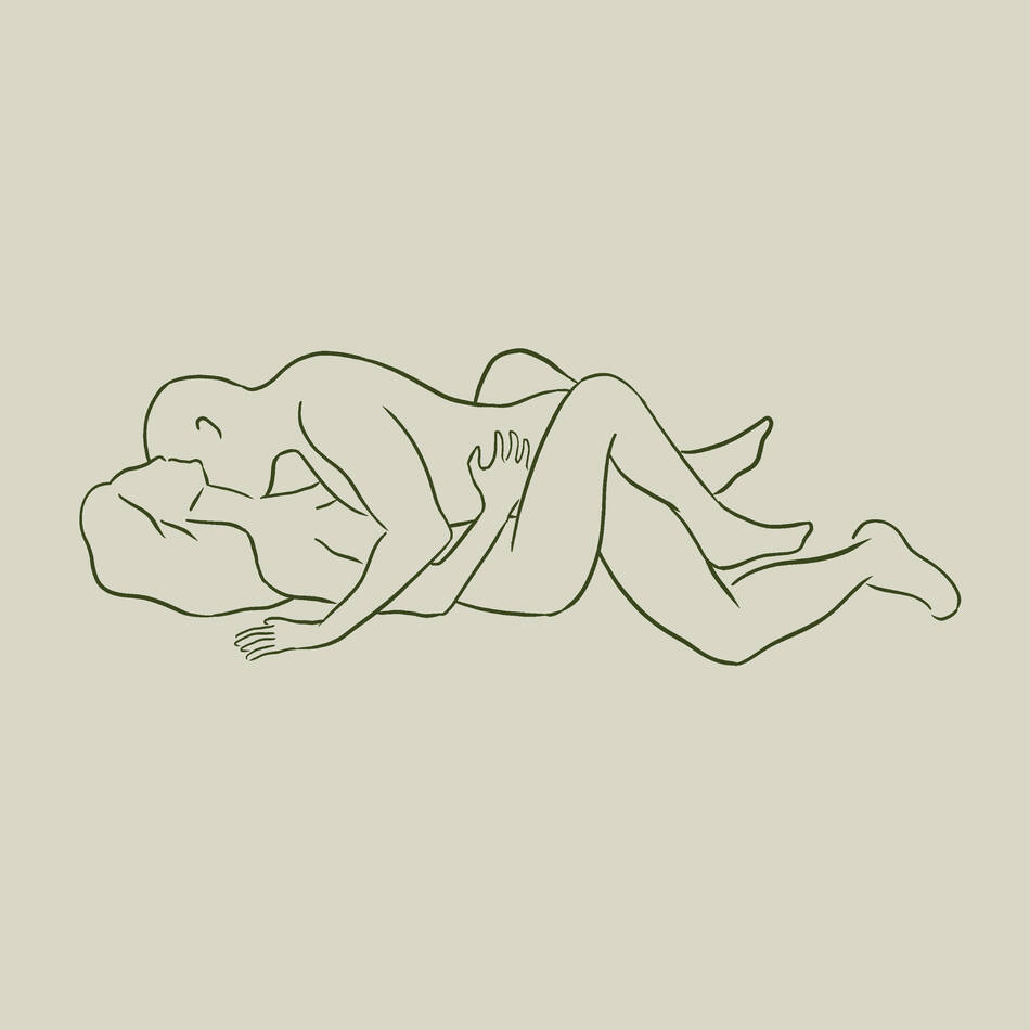 Endnu en skøn og intim sexstilling, som både er hyggelig og føles virkelig dejlig. Den går ud på, at I lægger jer i ske med modtageren forrest, så giveren kan penetrere bagfra. Her er der også godt med plads til, at giveren kan stimulere modtageren med sexlegetøj, imens I har sex - brug eventuelt en vibrator. Her er der igen rig mulighed for at kysse på munden, i nakken og nappe lidt i øreflipperne – en masse ting, som kan føles virkelig rart, intimt og dejligt.