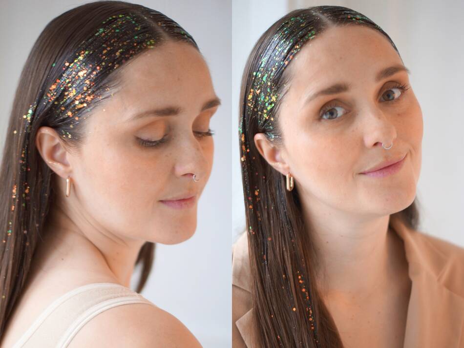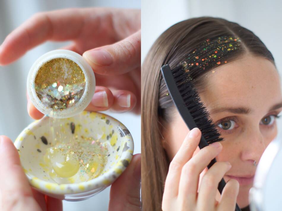 Step 3: Bland glitter til håret med en smule styling gel og rør det godt sammen. Brug din teasing brush til at stryge glimmeret fra hovedbund og ud i længderne.