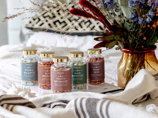 Smuuk Skin skønhedstabletter har hver deres unikke formulering og er målrettet forskellige behov. Smuuk Skin er udviklet i samarbejde med førende forskere og bliver fremstillet i Danmark. Skønhedstabletterne bliver produceret af JemoPharm på Møn, der har mere end 30 års viden og erfaring med produktion af vitamin-, mineral- og kosttilskud af højeste kvalitet. I indslaget her går vi i dybden med hvert produkt. Måske er dit nye favorit tilskud iblandt?