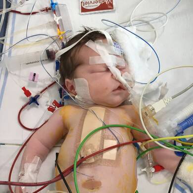 Vilfred bliver født d. 31. august 2015 ved et planlagt kejsersnit. Han kommer direkte på intensivafdelingen, hvor han skal ligge, til han to dage efter skal opereres. Det er en større operation, som er afgørende for, at lille Vilfred overlever.