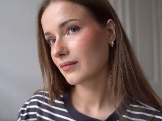 Et godt tip er at placere blush forsigtigt op mod tindingerne i en skrå vinkel, så du med din blush kan være med til at give dit ansigt et mere løftet og frisk look. Put eventuelt det overskydende blush på børsten direkte på din næse, da det også er her solen naturligt vil give lidt farve og glød.