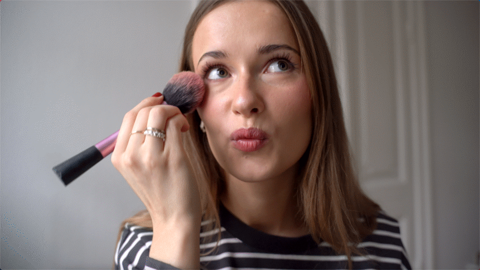 For at få et naturligt look ved brug af blush, er det vigtigt at lægge blusen højt på kindbenene. Mange lægger blush under øjnene eller for lavt på kindbenene og dette kan give et helt andet look og få ansigtet til at se tungt ud.