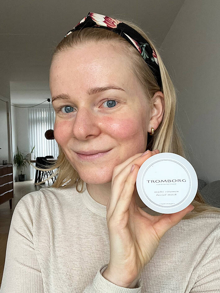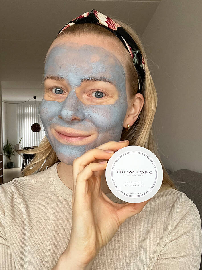Start med at bruge en muddermaske, så huden er frisk og ren. Inden du går i gang, så husk at rense huden, fx med Tromborgs Herbal Cleansing Water, så skidt og snavs fjernes.