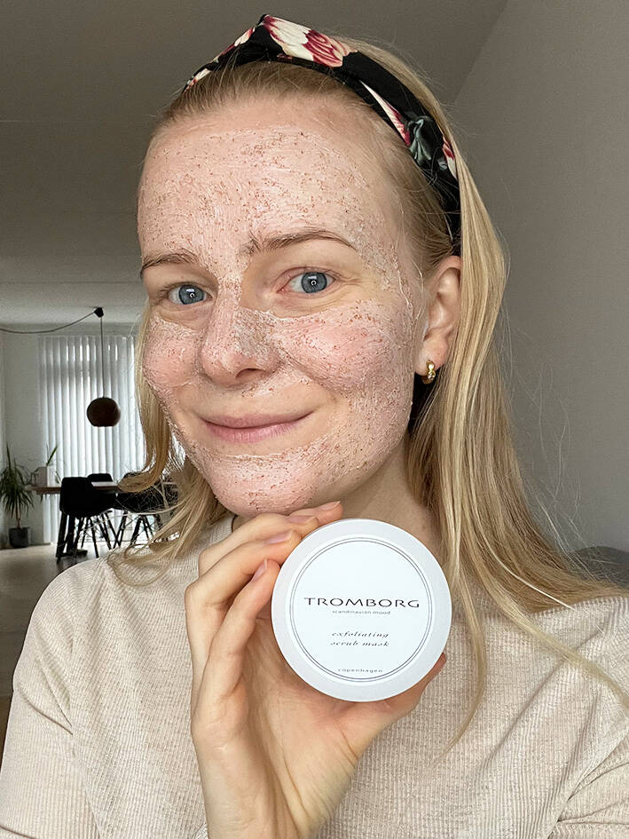 Exfoliating Scrub Mask fra Tromborg fjerner urenheder og døde hudceller fra hudens overflade, og tilfører huden ny energi og udstråling. Den indeholder en vitaminrig blanding fra frugtkød fra appelsin og grapefrugt, samt fugtgivende ingredienser som macadamianødde-olie.