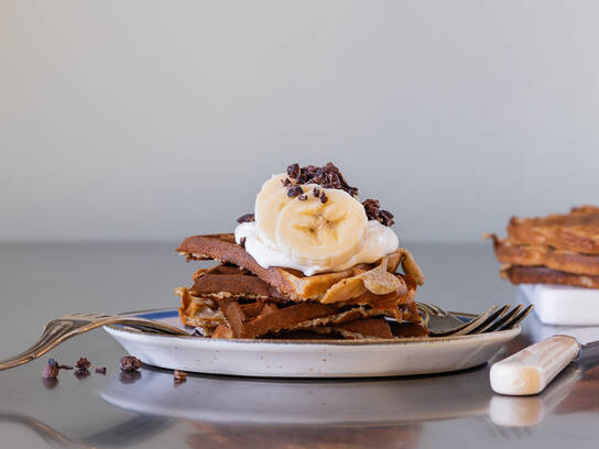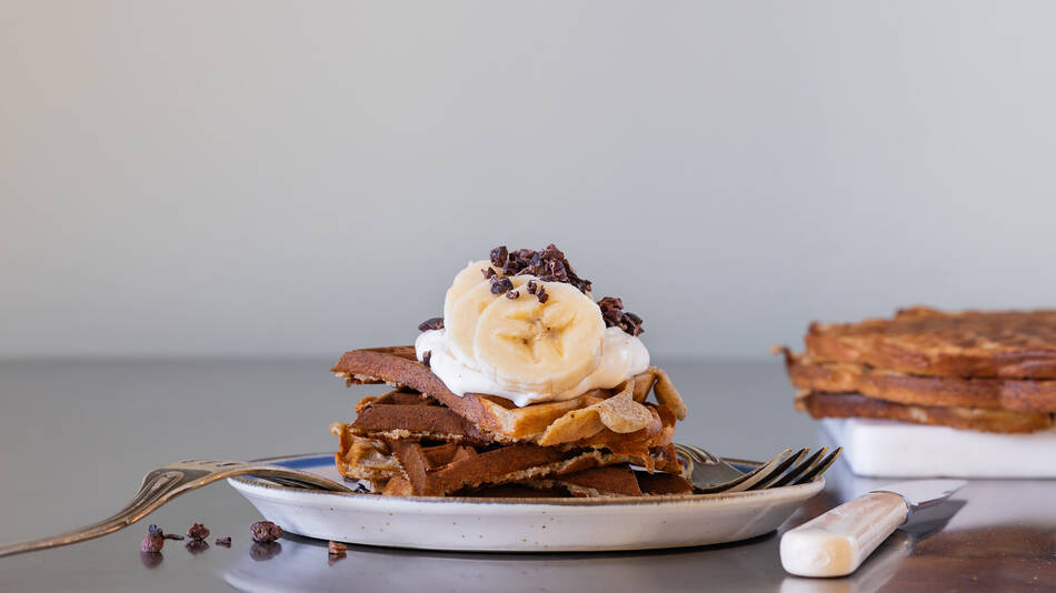 Denne opskrift kombinerer det bedste fra morgenmad og dessert. Bananerne giver naturlig sødme, kardemommen tilføjer varme noter, og flagesalt balancerer smagen.Til Valentinsdag kan du gøre vaflerne ekstra særlige ved at servere dem med et glas bobler eller måske forme dem som hjerter, hvis dit vaffeljern har den mulighed. Du kan endda toppe dem med jordbær, flødeskum eller en smule hindbærsyltetøj for at sætte prikken over i’et.