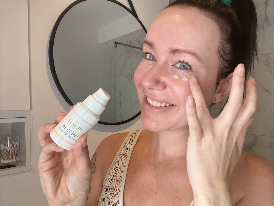 - Jeg er vild med, at produkterne er ret drøje, hvilket betyder, at jeg ikke skal bruge særlig meget produkt ad gangen. Særligt øjencremen er jeg imponeret over, hvor lidt der skal til, for at min hud omkring øjnene var total dækket ind.