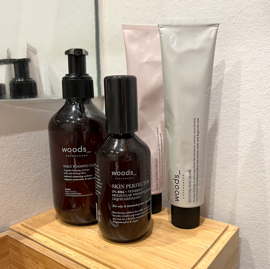 Derudover er jeg meget inspireret af Woods Copenhagens tilgang til hudpleje, for det handler om at passe på sin hud og arbejde med det, vi allerede har – og det behøver man altså ikke en lang række produkter for at komme godt i mål med, så længe de produkter, man bruger, er effektive.