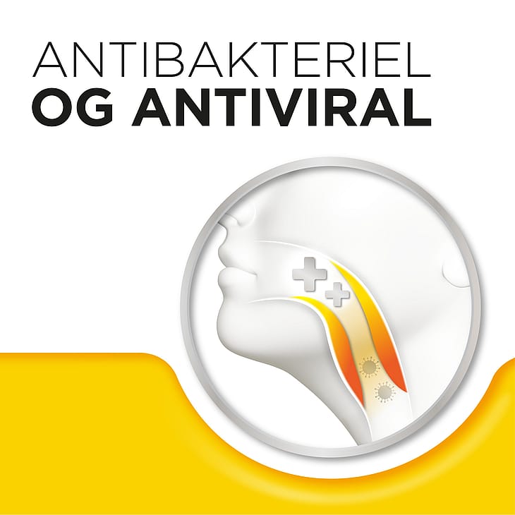Strepsils med Honning og Citron sugetabletter virker smertelindrende og har bakteriedræbende virkning.