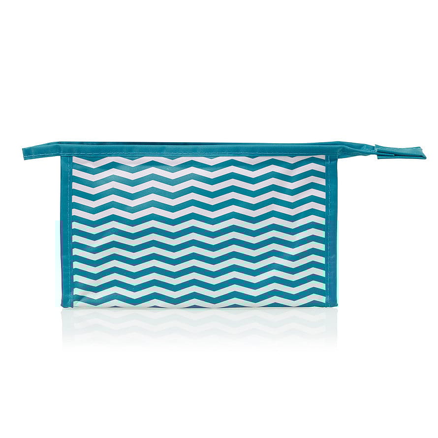 Smart lille A-formet makeup pung fra Studio. Makeup pungen har chevron print i hvid og blå, og et lynlås rum med plads til dine mest essentielle produkter.