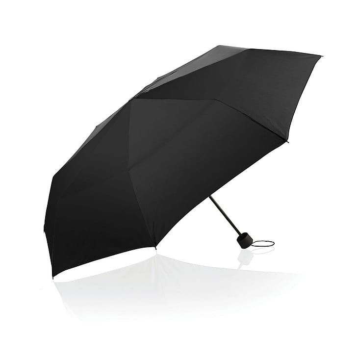 Sort paraply i genanvendt plastik. Klassisk sort paraply fremstillet af genanvendt plastik er det perfekte valg til at beskytte dig mod regnvejret.
