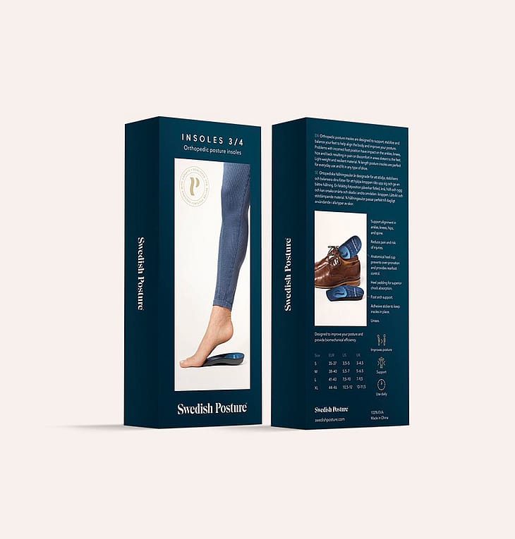 Align 3/4 indlægssåler fra Swedish Posture er designet til at forbedre din kropsholdning, give ekstra støtte og reducere belastning på fødder, knæ og ryg.