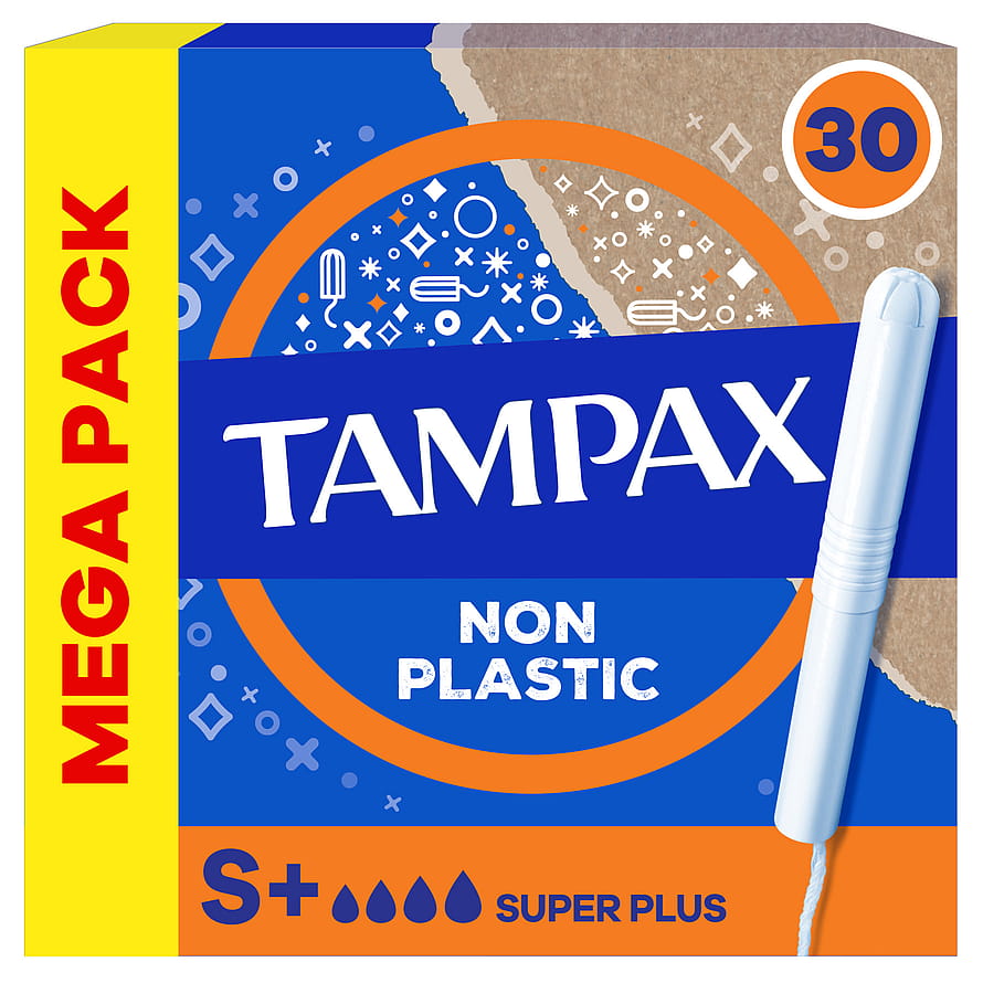 TampaxSuper Plus-tamponer med indføringshylster af pap hjælper dig med at føle dig ren og tryg. Det er tamponer uden plastik og uden parfume og farvestoffer.