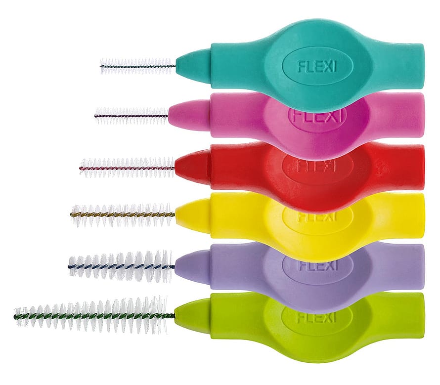 TANDEX FLEXI mellemrumsbørste giver effektiv og skånsom rensning af tandmellemrum. Det bøjelige, skridsikre håndtag gør det let at komme til bagerst i munden og giver samtidig et fast greb. Vælg de størrelser, der passer dine behov bedst. Håndtagsfarve Assorteret = PHD 0.6-1.4/ISO 0-4 - Cylindrisk og Konisk børsteform* *Bemærk - NY betegnelse på størrelse, der følger den nye ISO-standard for mellemrumsbørster - produkter og farven er som før. TANDEX FLEXI: Markedets bredeste produktserie indenfor mellemrumsbørster med ialt 15 varianter - 11 størrelser og 2 blødheder. TANDEX FLEXI mellemrumsbørster kan med fordel suppleres med TANDEX PICKI tandstikkere og TANDEX FLOSI tandtråd og flossere.