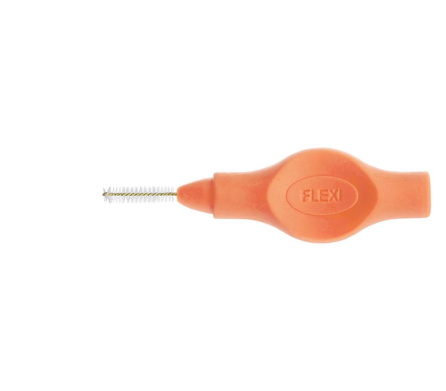 TANDEX FLEXI mellemrumsbørste giver effektiv og skånsom rensning af tandmellemrum. Det bøjelige, skridsikre håndtag gør det let at komme til bagerst i munden og giver samtidig et fast greb. Vælg de størrelser, der passer dine behov bedst. Håndtagsfarve Tangerine = PHD 0.8/ISO 1 - Cylindrisk børsteform* *Bemærk - NY betegnelse på størrelse, der følger den nye ISO-standard for mellemrumsbørster - produkter og farven er som før. TANDEX FLEXI: Markedets bredeste produktserie indenfor mellemrumsbørster med ialt 15 varianter - 11 størrelser og 2 blødheder. TANDEX FLEXI mellemrumsbørster kan med fordel suppleres med TANDEX PICKI tandstikkere og TANDEX FLOSI tandtråd og flossere.