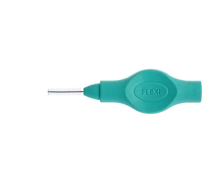 TANDEX FLEXI mellemrumsbørste giver effektiv og skånsom rensning af tandmellemrum. Det bøjelige, skridsikre håndtag gør det let at komme til bagerst i munden og giver samtidig et fast greb. Vælg de størrelser, der passer dine behov bedst. Håndtagsfarve Turquoise = PHD 0.6/ISO 0 - Cylindrisk børsteform* *Bemærk - NY betegnelse på størrelse, der følger den nye ISO-standard for mellemrumsbørster - produkter og farven er som før. TANDEX FLEXI: Markedets bredeste produktserie indenfor mellemrumsbørster med ialt 15 varianter - 11 størrelser og 2 blødheder. TANDEX FLEXI mellemrumsbørster kan med fordel suppleres med TANDEX PICKI tandstikkere og TANDEX FLOSI tandtråd og flossere.