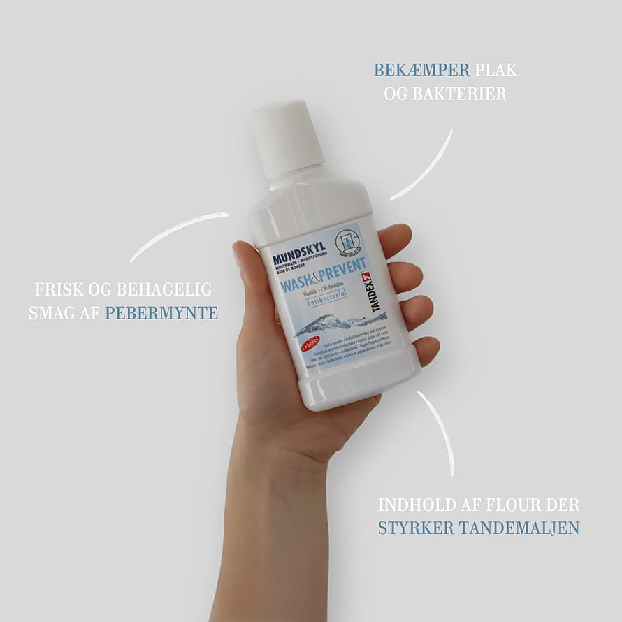 TANDEX WASH & PREVENT mundskyl, der er et godt supplement til forebyggende tandpleje.