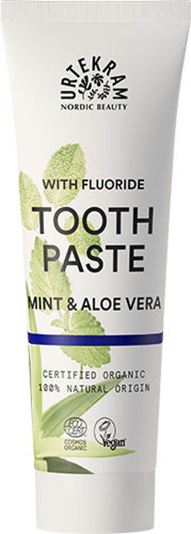 Den nye Cosmos Organic standard for økologisk kosmetik tillader brugen af fluor. Derfor lancerer vi nu Urtekram Mint Toothpaste med fluor og aloe vera og imødekommer dem, der ønsker fluor beskyttelse i tillæg til den naturligebeskyttelse i Urtekram tandpasta.