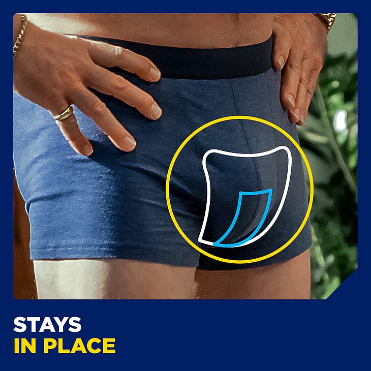 Ultratyndt indlæg i unikt, sort design til mænd i alle aldre, der drypper en smule urin og har brug for diskret beskyttelse til at opsuge væske og fjerne lugtgener.