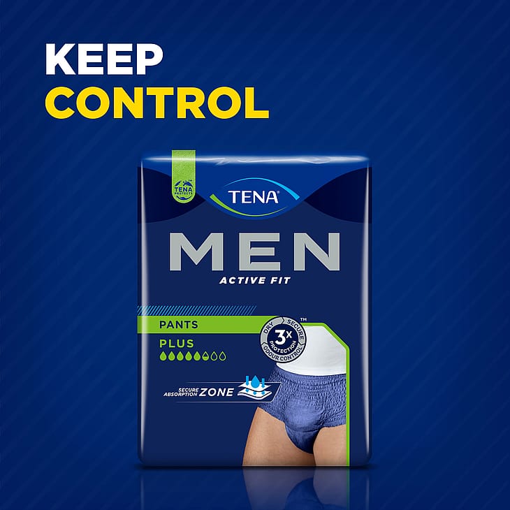 TENA Men Active Pants er en bukseble specielt tilpasset mænd og giver enestående sikkerhed og diskretion.