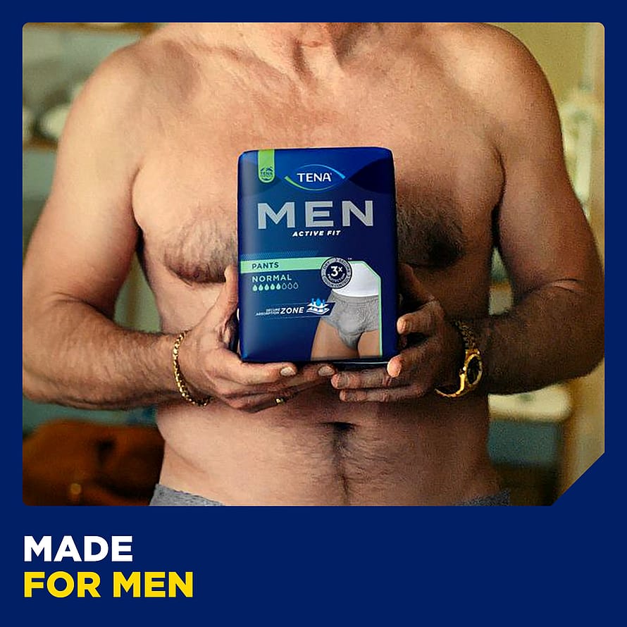 TENA Men Active Pants er en bukseble specielt tilpasset mænd og giver enestående sikkerhed og diskretion.