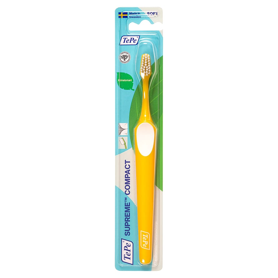 TePe Supreme™ tandbørsten fås i Soft og Compact Soft og er velegnet til voksne og større børn. For optimal mundhygiejne anbefales det at børste tænder to gange dagligt, morgen og aften, sammen med tandpasta. TePe Supreme™ er anbefalet af Danske Tandplejere.