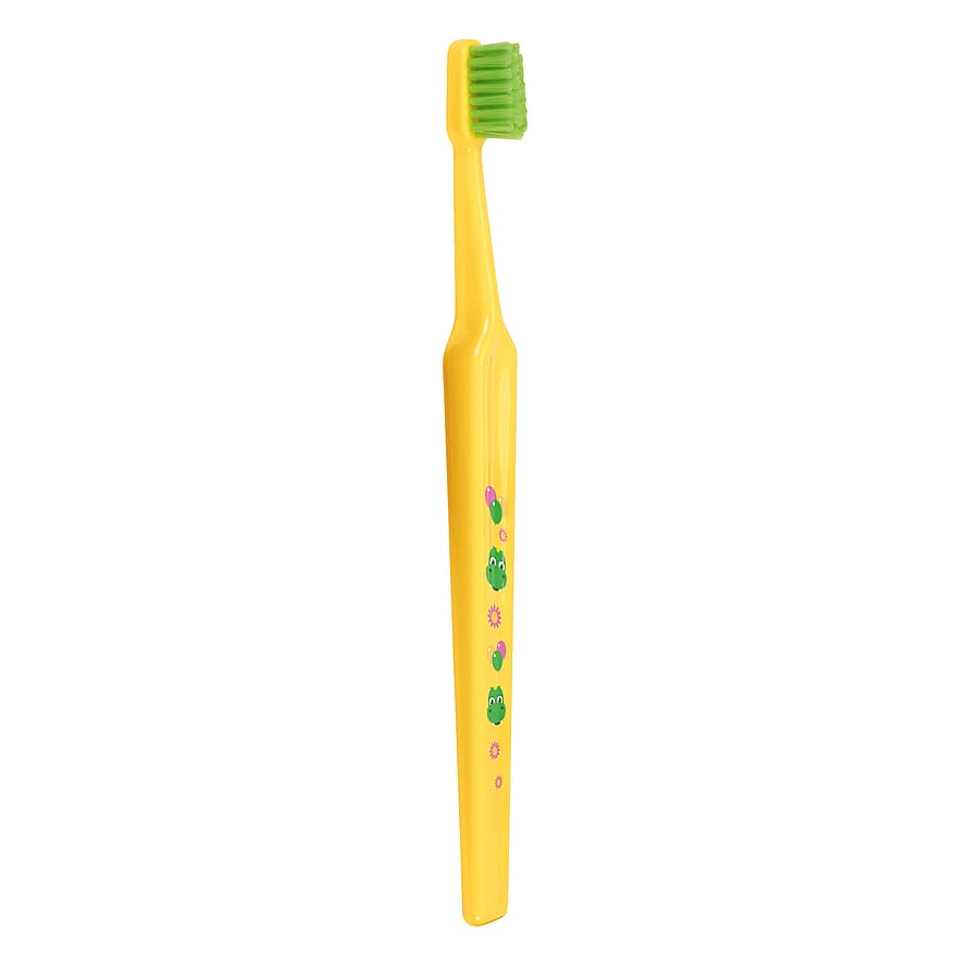 Det afsmalnede børstehoved er lille og tilpasset barnets mund, så det er nemt at komme til alle områder. De ekstra bløde børstehår rengør barnets første tænder nænsomt og er skånsomme mod følsomt tandkød. Tandbørsten er velegnet til daglig brug og giver en tryg start på god mundhygiejne.